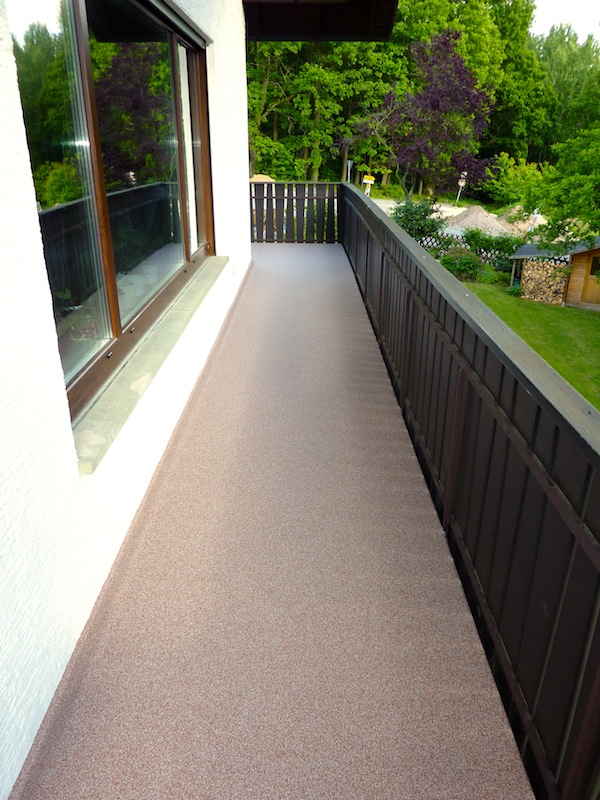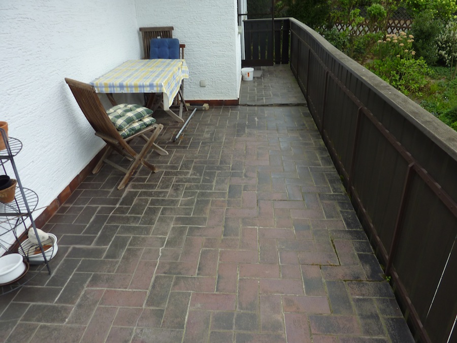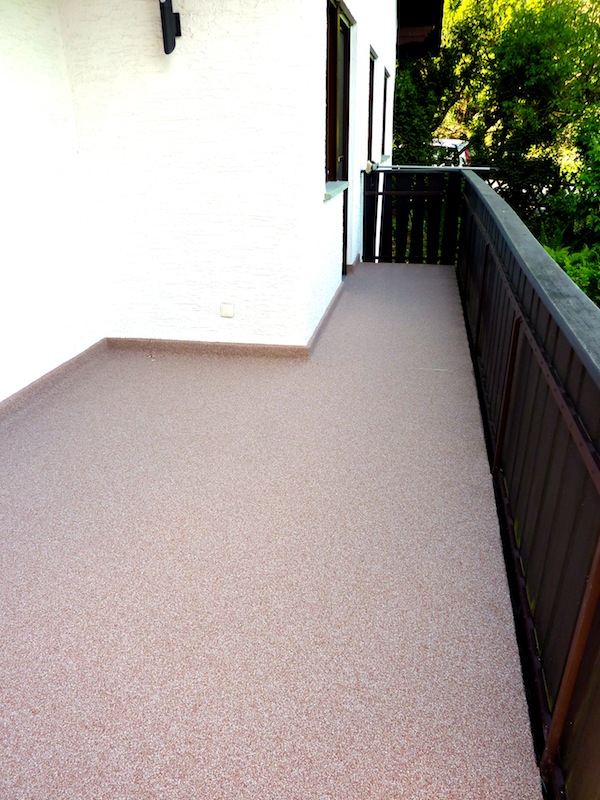 Bauobjekt & Zustand: gefliester Balkon 37 qm, undicht, hohle Fliesen, poröser Estrich